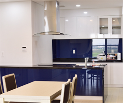 Tùy thuộc vào cách bố trí nhà bếp của bạn, đôi khi vị trí lý tưởng cho một lò nướng hoặc một bộ ngăn kéo sẽ hơi quá gần một bàn đảo. Nhà bếp này giải quyết vấn đề đó bằng cách nối dài mặt bàn đảo hơn so với thân bàn đảo, đồng thời, chân của bạn cũng không bị vướng khi di chuyển.