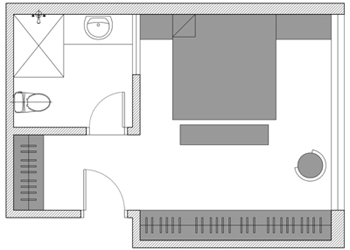 Luồng lưu thông trở nên khó hơn một chút với các phòng ngủ có phòng tắm. Để tiết kiệm không gian, hãy chú ý đến vị trí đặt phòng tắm và tủ quần áo trong phòng ngủ của bạn.