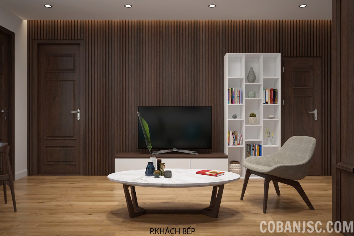 Phong cách thiết kế của căn hộ này là hiện đại, tối giản và ấm cúng, rất phù hợp với các căn hộ chung cư, nhà phố có diện tích vừa và nhỏ, mang lại không gian sống tiện nghi, thoải mái và có tính thẩm mỹ cao.