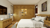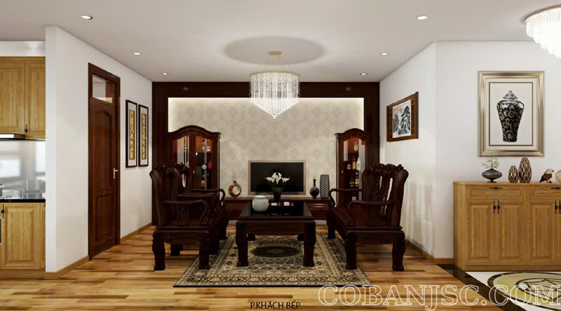 Căn hộ này theo phong cách hiện đại nhưng vẫn giữ được nét ấm cúng và sang trọng của vật liệu gỗ tự nhiên, gợi nhớ đến phong cách nội thất Á Đông truyền thống. Tuy thiết kế của dự án này hướng đến sự tiện nghi, gọn gàng nhưng lại không kém phần tinh tế và gần gũi.