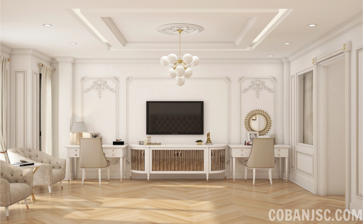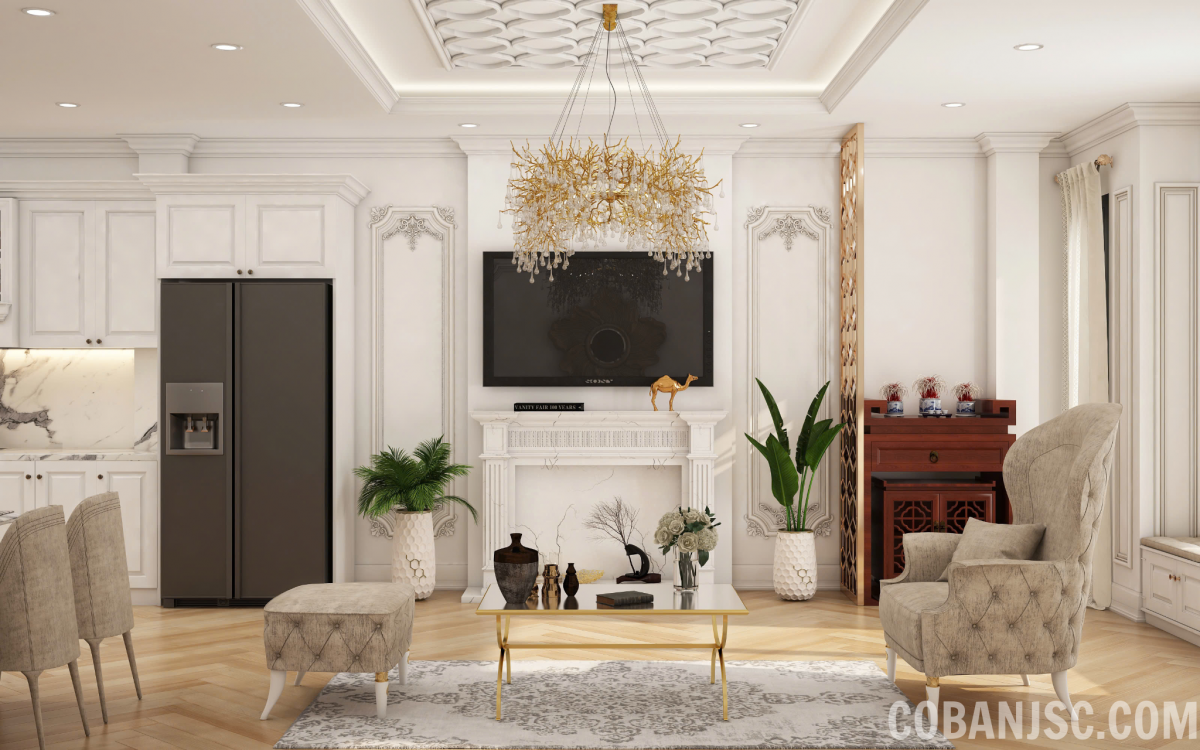 Một phong cách nội thất Tân cổ điển sang trọng được thiết kế đặc biệt cho những người yêu thích sự lãng mạn, tinh tế với các chi tiết trang trí cầu kỳ nhưng không quá rườm rà đem đến sự hài hòa cho căn nhà. Phong cách nội thất này thể hiện sự cân bằng giữa nét đẹp cổ điển lãng mạn và sự tiện nghi, sang trọng của cuộc sống hiện đại.