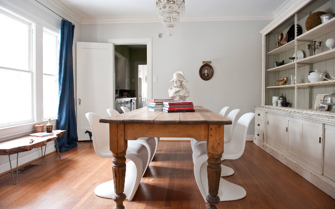 Một chiếc bàn ăn truyền thống đẹp đẽ, kết hợp với ghế gỗ mộc mạc hay kết hợp với những chiếc ghế hiện đại như ghế Panton, đều là sự lựa chọn tuyệt vời. Bạn cân nhắc thêm kiểu bàn đa năng có thể tháo rời các tấm, phù hợp với nhiều không gian.