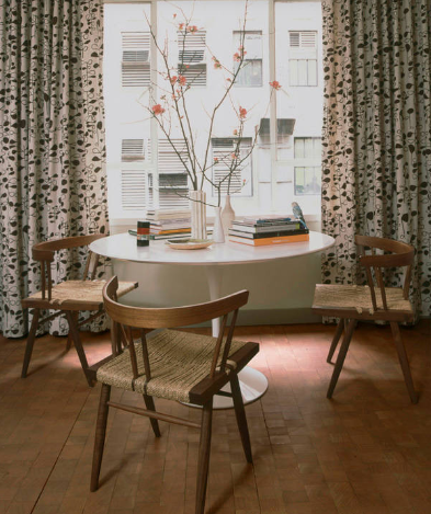 Lưu ý về kích thước: Nếu bạn sống trong một căn hộ có diện tích khiêm tốn, một chiếc bàn tròn nhỏ như chiếc bàn Saarinen Tulip Table ở đây có thể vừa vặn trong một không gian hẹp và còn có thể sử dụng như là bàn làm việc.