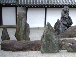 Đá, cát và sỏi là những yếu tố thiết yếu của khu vườn Nhật Bản. Vai trò của đá trong các khu vườn Nhật Bản để tượng trưng cho các hòn đảo / ngọn núi, được cho là một đặc tính thẩm mỹ của các khu vườn truyền thống của Nhật Bản.