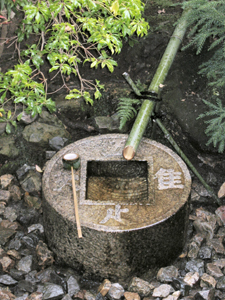 Vị trí của giếng nước - tsukubai, thấp hơn hàng hiên khi người ta đứng ngắm nó, buộc người ta phải cúi đầu kính cẩn để lắng nghe tiếng nhỏ giọt vô tận của nước từ ống tre và cảm nhận đầy đủ hơn ý nghĩa triết học sâu sắc của nó.